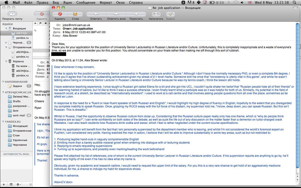 I have nearly cried with laughter this morning reading your job applications.