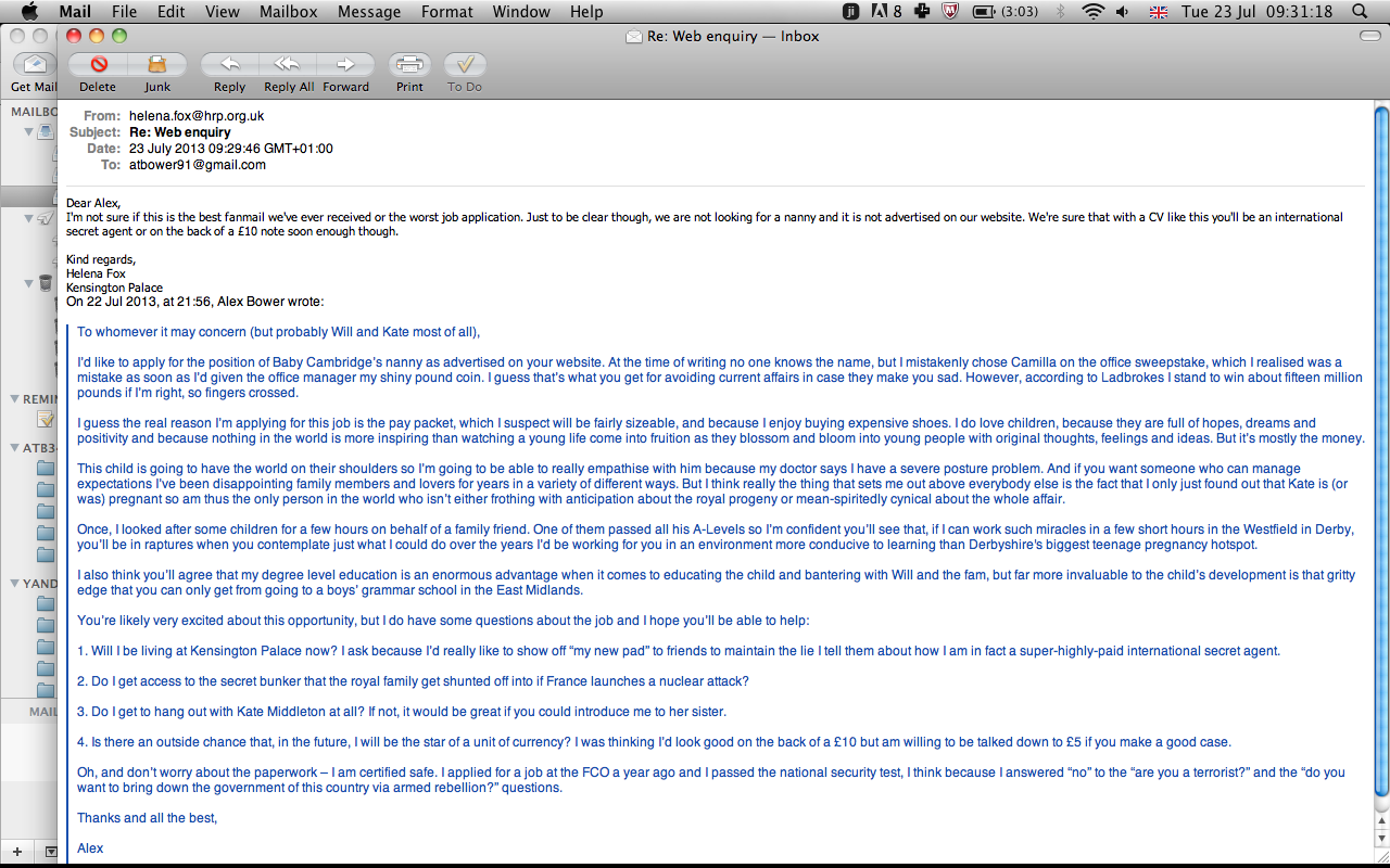 I definitely wasn’t expecting a reply about this, but it has considerably advanced my love for the royals and their staff. Still no closer to meeting Pippa though. (Click to enlarge).